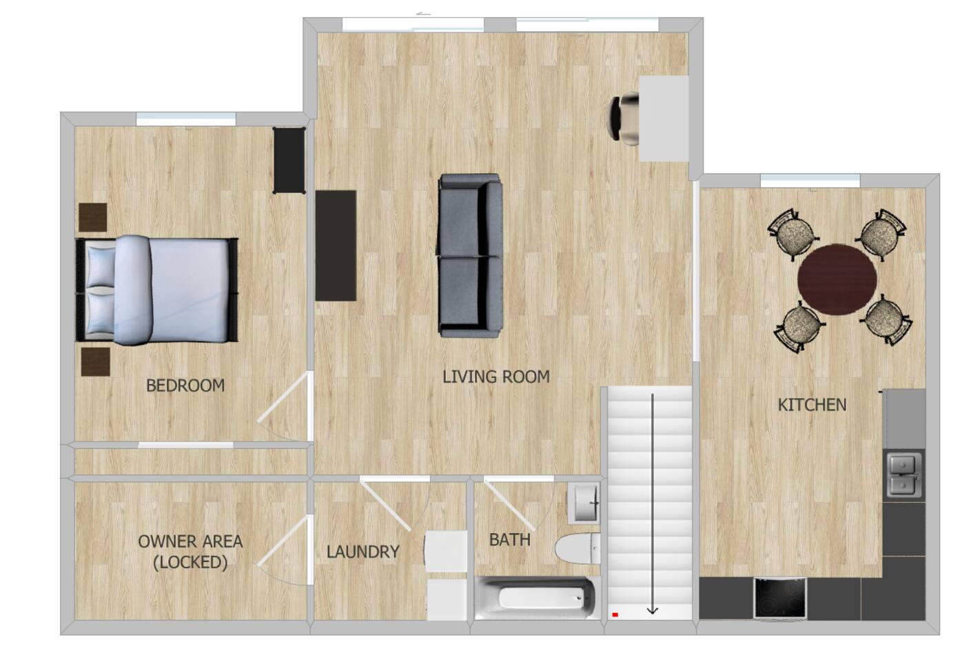Bedroom and laundry