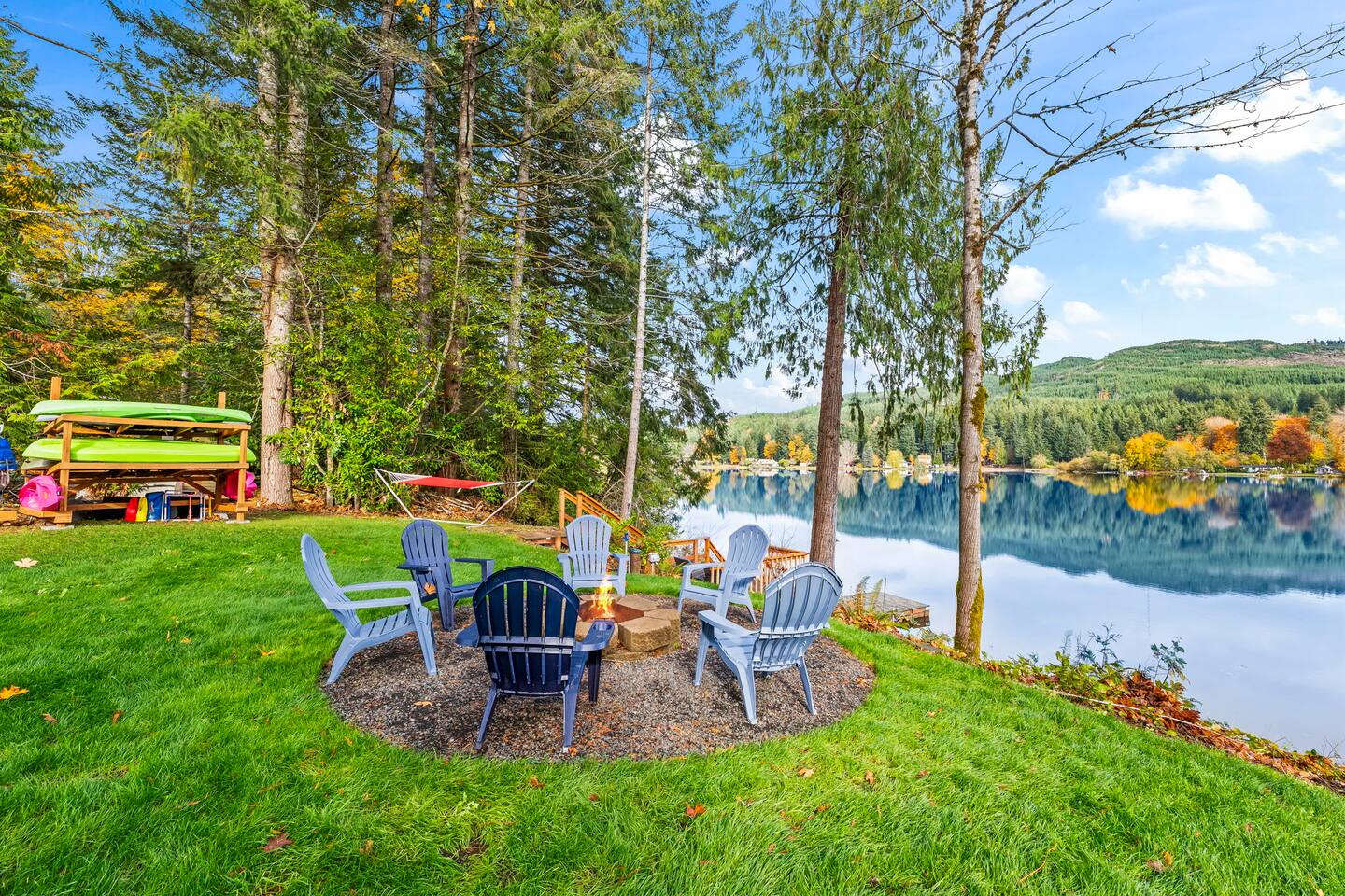 This dog-friendly, spacious lakefront retreat is perfect for families and friends seeking a quiet and fun-filled escape from the city. Just 90 minutes from Seattle and SeaTac International Airport. Amenities Include: Private, swimmable lake access with complimentary kayaks and Hydrobike Dog-friendly Game Room with Gaming System, Foosball, Board Games, DVDs & Books Multiple Outdoor Dining & Lounge Areas Breathtaking Views Year-Round