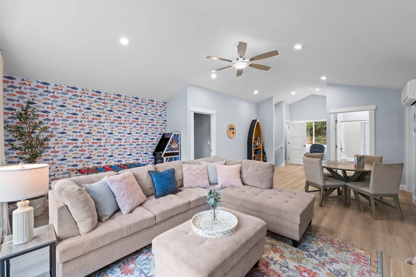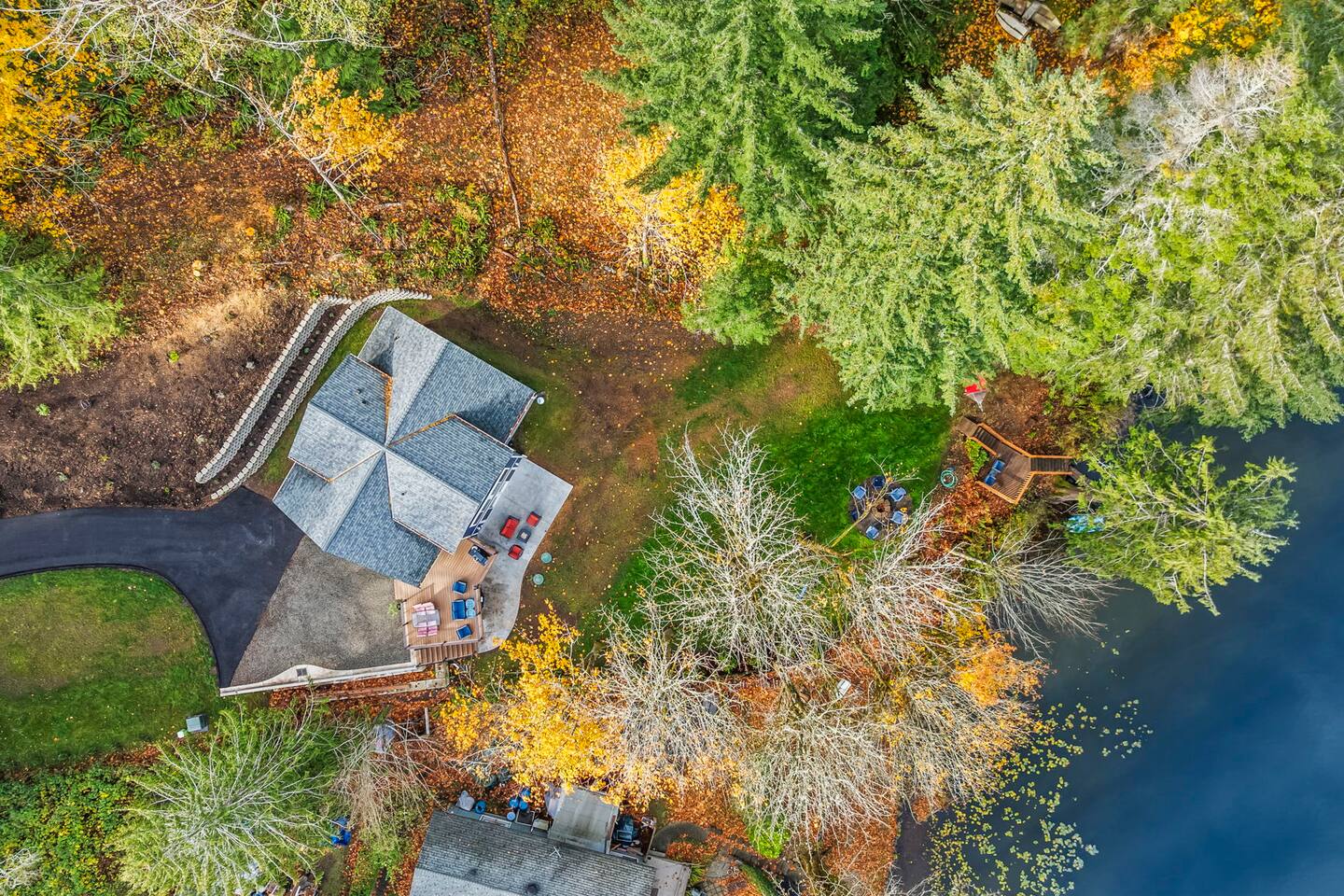 🏡 The Home Cheerful, family-first lakefront retreat in Bremerton, WA (90 minutes from Seattle) Ideal for families, groups, kids, and pets Spacious layout with warm, thoughtful design 🛏️ Main Home Sleeping Arrangements Primary suite with lake views, walk-in shower, and bidet Upstairs queen bedroom + twin bedroom with a magical hidden playroom nook Game room stocked with foosball, board games, books, and classic DVDs 🍳 Kitchen & Dining Open kitchen with sleek LG appliances and a cozy coffee bar Large dining table seats 8—perfect for shared meals and laughter 🌊 Outdoor & Lakefront Fun Located on a small lake with calm waters for swimming, floating, and kayaking Kayaks provided year-round Nature trails, rock-skipping spots, and space for lakeside games Multiple outdoor seating and dining areas for relaxing or gathering 🐾 Dog-Friendly Dogs welcome! Set up a maximum of TWO dogs to enjoy their stay too. 📍 Location Just 90 minutes from Seattle Close enough for easy getaways, far enough to feel like a true escape